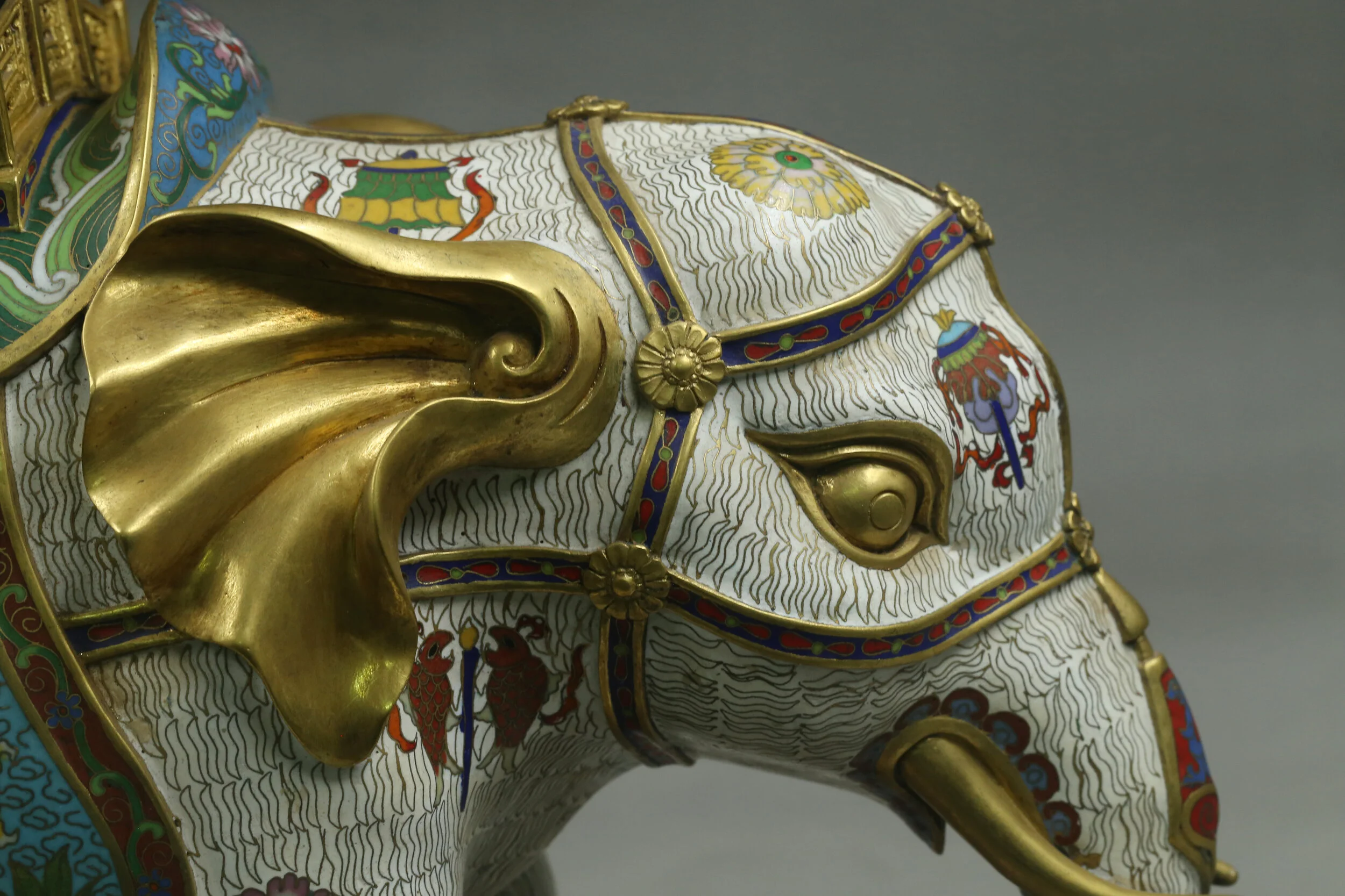A Pair of Cloisonne Elephant-Pagoda Statues. Height: 30.7" Length: 16.9" Weight: 57.87 lb (each)